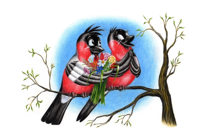 Снегири картинки нарисованные