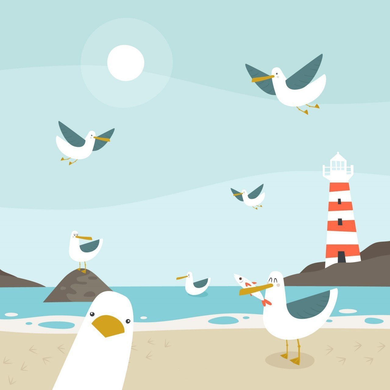 ![Чайки мультяшные]()