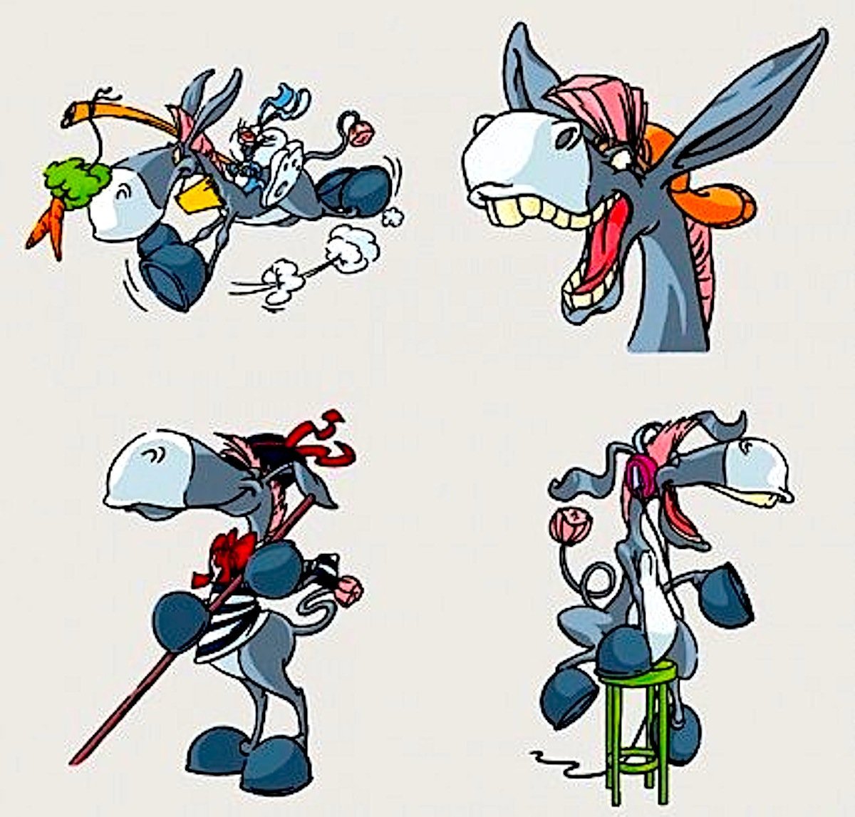 Забавные мультяшные ослики