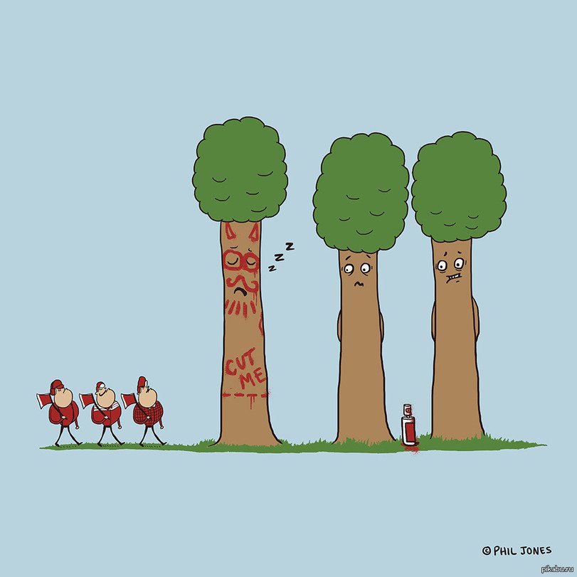 Вырубка деревьев карикатура