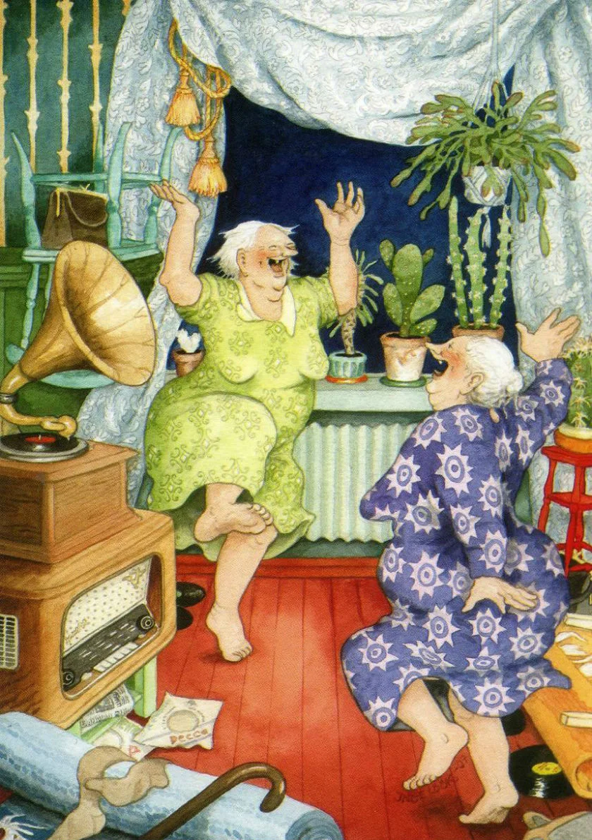 ![Веселые старушки финской художницы Инге Лоок]()