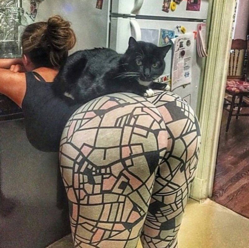 Котик на попе девушки