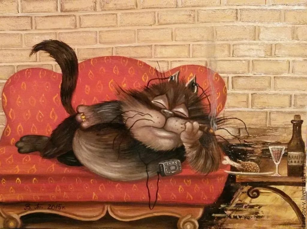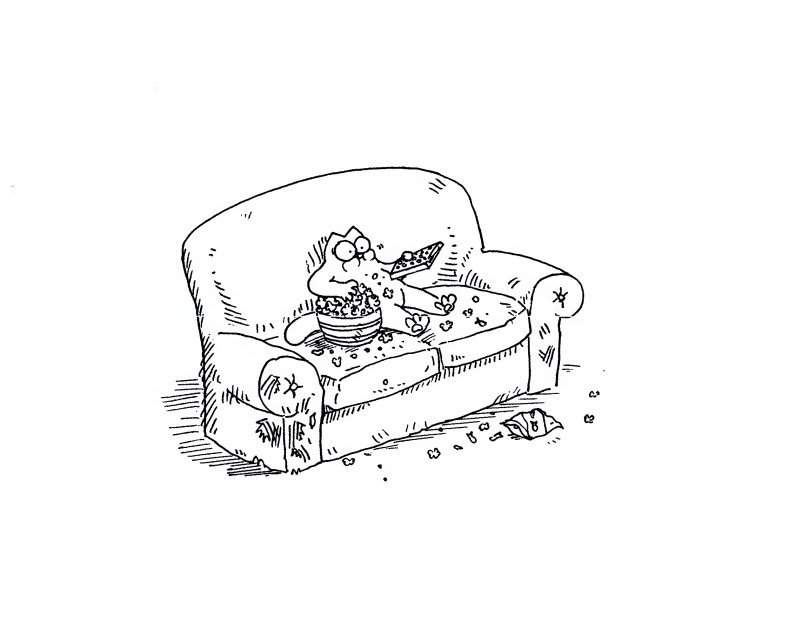 ![Мультяшный кот на диване]()