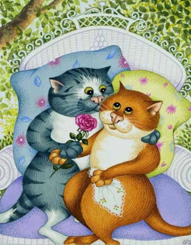 Котики обнимаются мультяшные