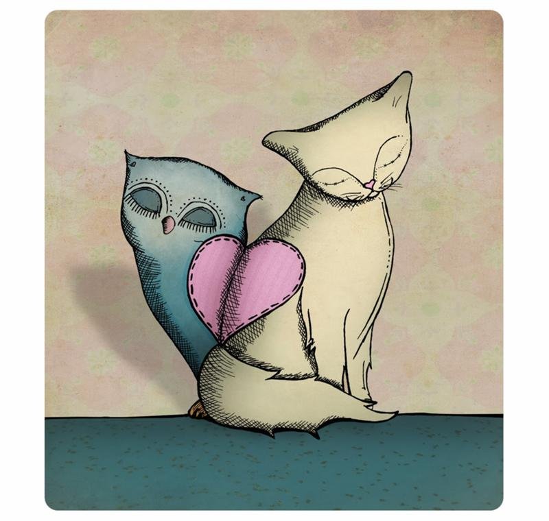 Сова и кот арт любовь