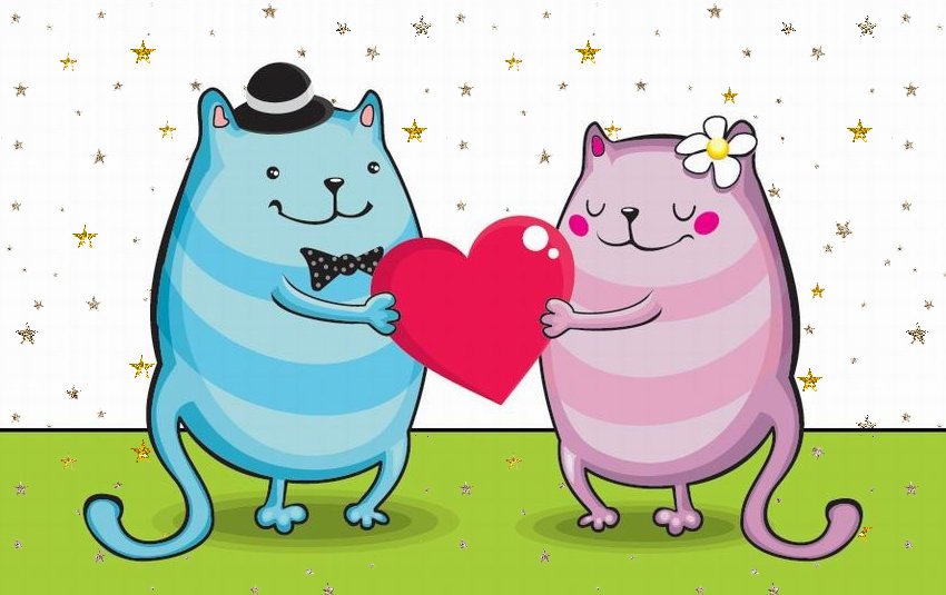 Милые влюбленные котики мультяшные