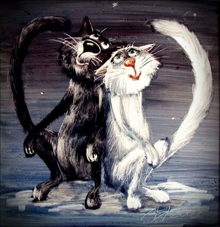 Веселый и неповторимый мир кошек всегда привлекает внимание, особенно когда речь идет о любви. Встреча двух милых созданий - кота и кошки - нарисована с такой нежностью и юмором, что этот смешной рисунок не оставит равнодушными ни одного зрителя. Они изображены в довольно забавных позах, подчеркивающих их очарование и непосредственность чувств. Этот рисунок выражает всю гамму любви и радости, которую кошки и коты способны вызывать у нас, смотря своими яркими глазками и непосредственным поведением. Что может быть более милым и смешным, чем взгляд игривого кота и его возлюбленной кошки?