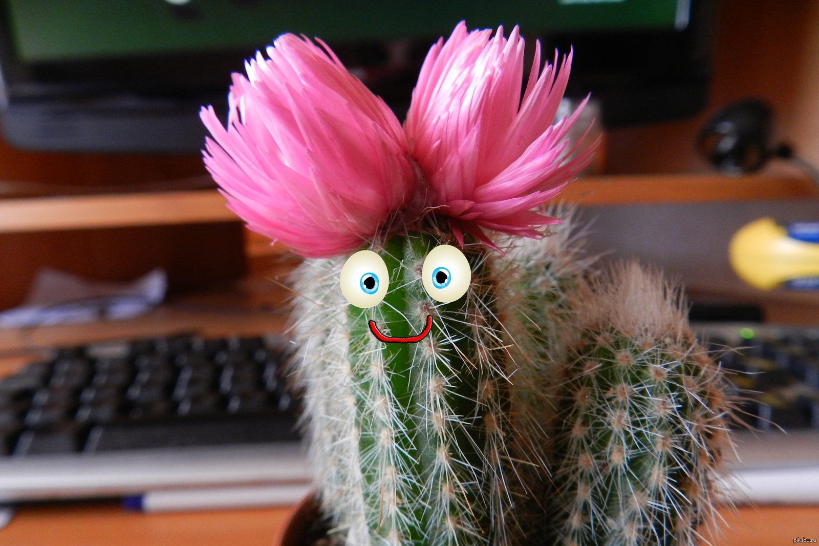 Кактус с цветком и лицом