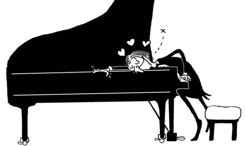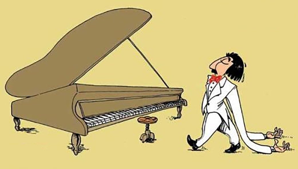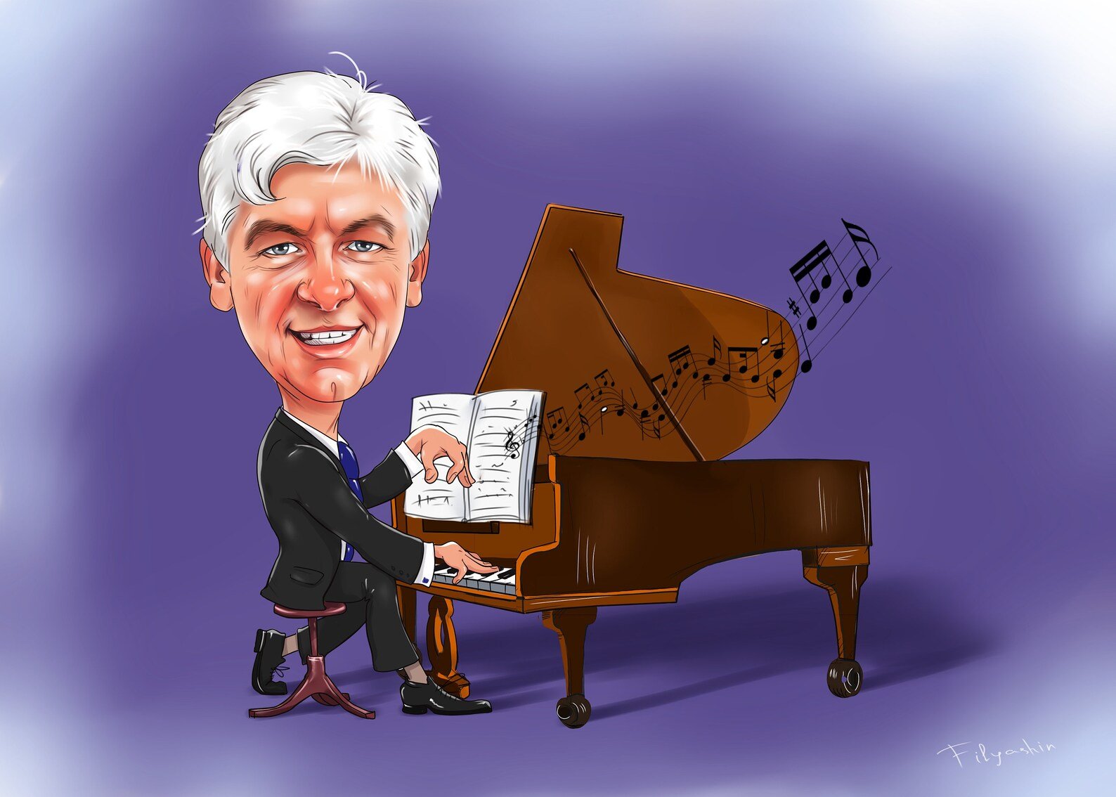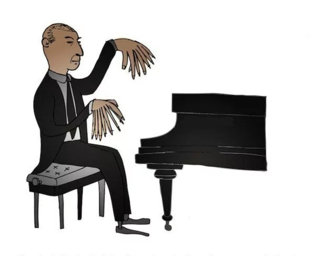 Улыбчивый пианист, исполняющий свою музыку с энтузиазмом и страстью - так можно охарактеризовать этот смешной рисунок. На картине запечатлено его выразительное лицо, полное радости и вдохновения, а его руки легко скользят по клавишам фортепиано. Весь образ пианиста пропитан игривостью и юмором, что невозможно не вызвать улыбку на лицах зрителей. Этот рисунок напоминает нам о том, что музыка - это не только серьезное и глубокое искусство, но и источник радости и веселья.