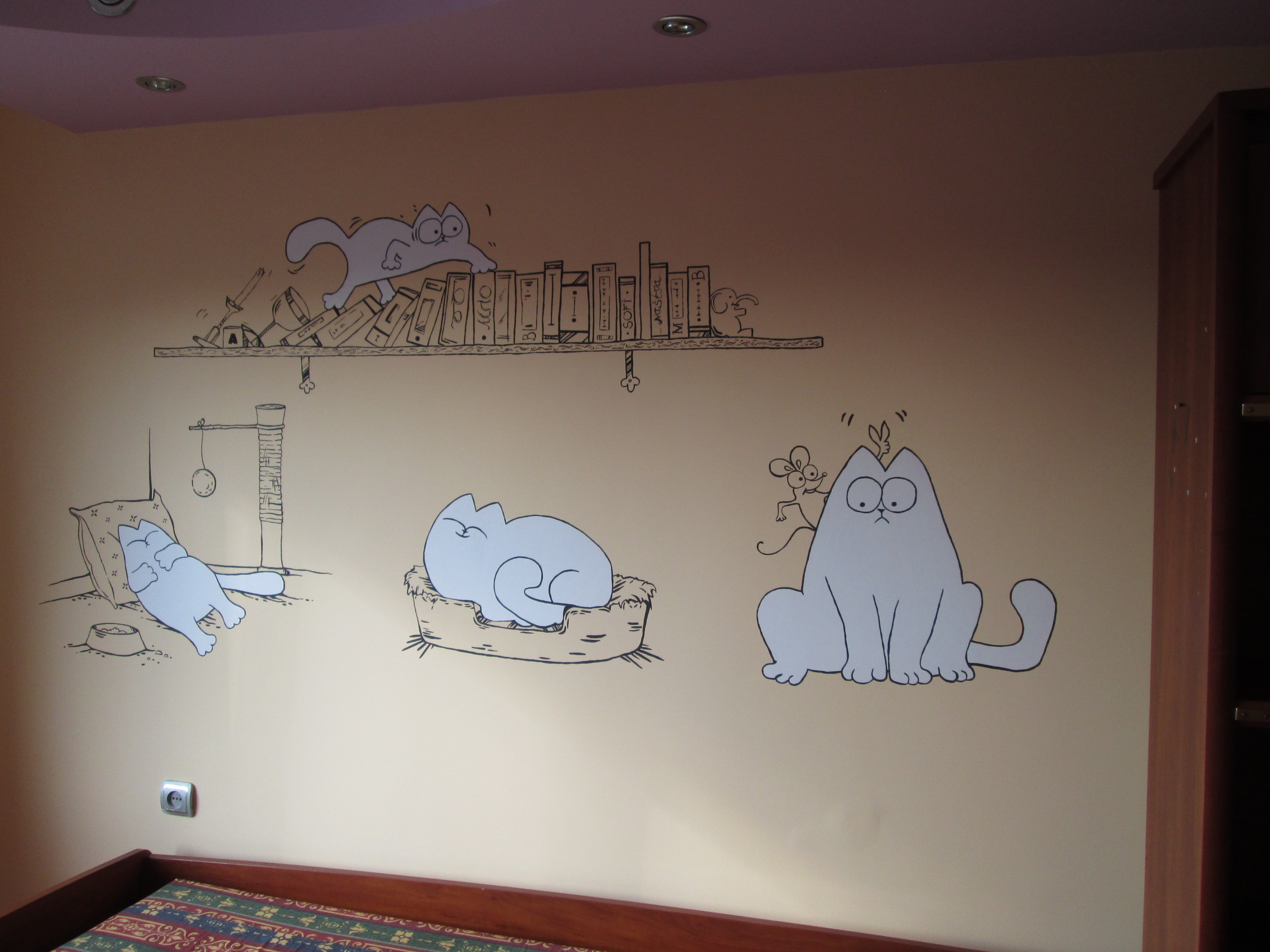 Роспись стены коты