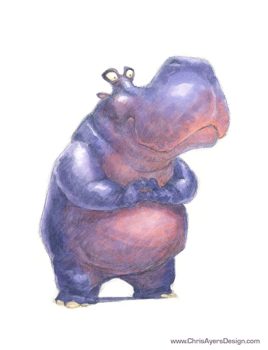 Бегемот акварелью