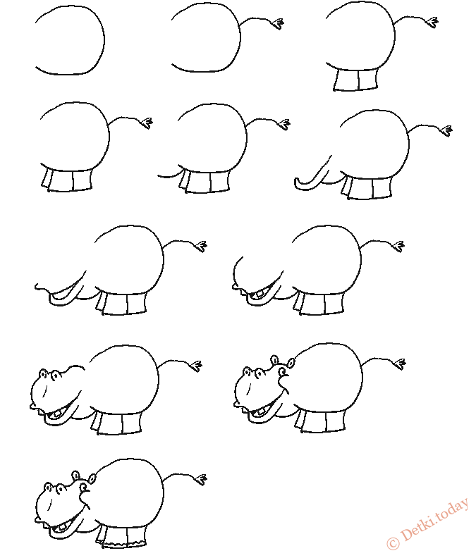 Нарисовать бегемота поэтапно