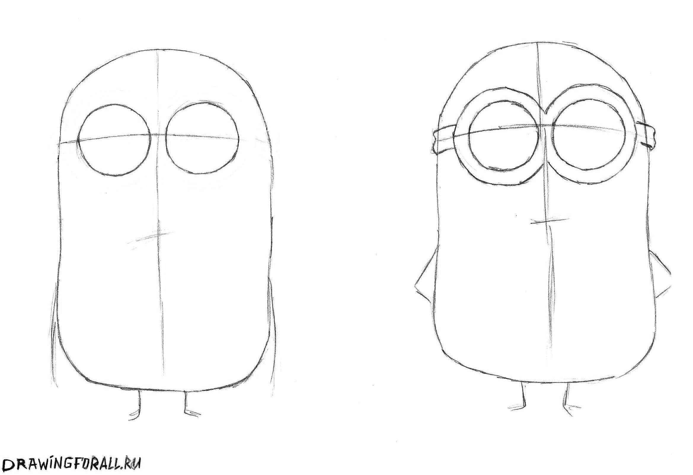 Рисунок миньона карандашом поэтапно