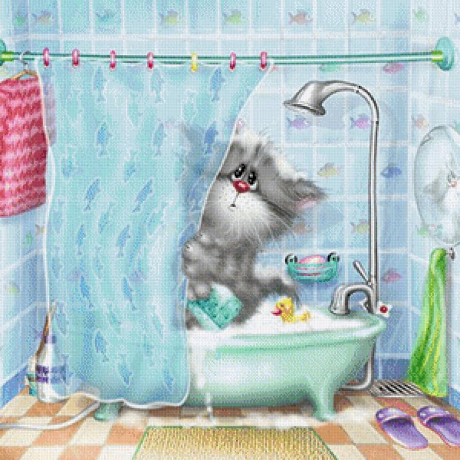 Мультяшный кот в ванной
