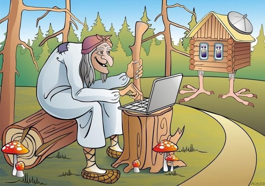 Баба Яга с ноутбуком