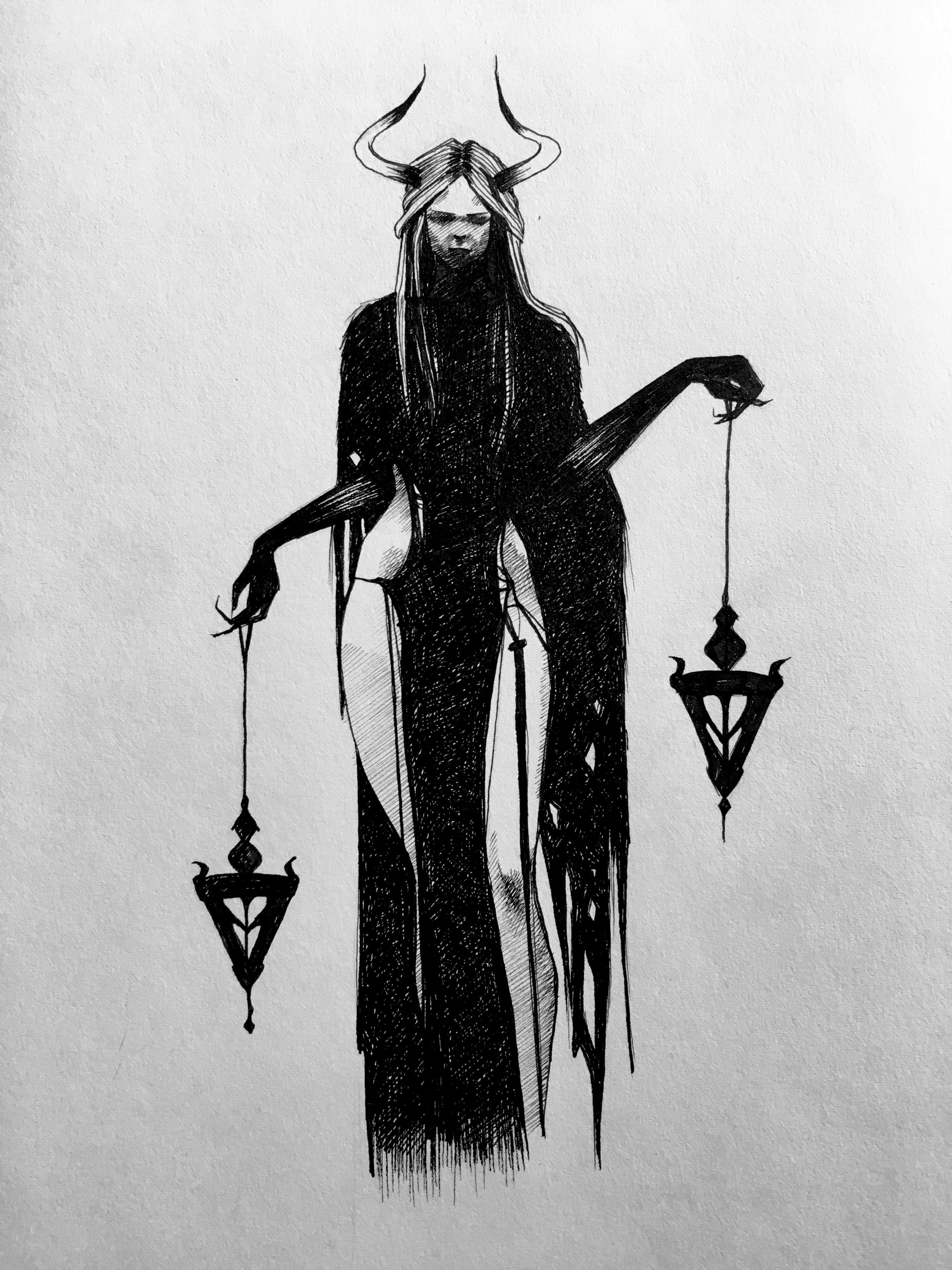 Ведьма рисунок карандашом