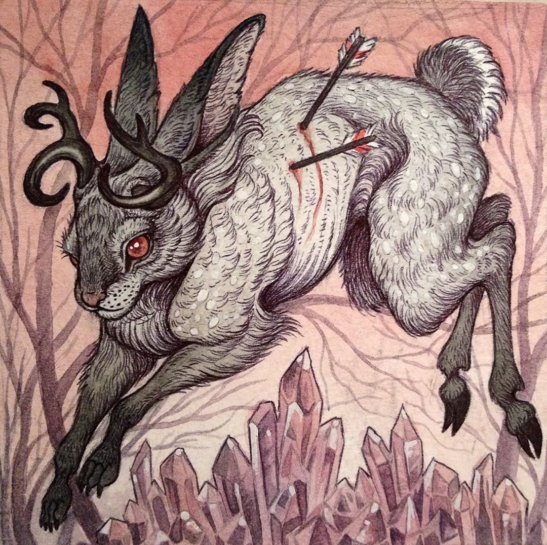 ![Кролик с рогами эскиз]()