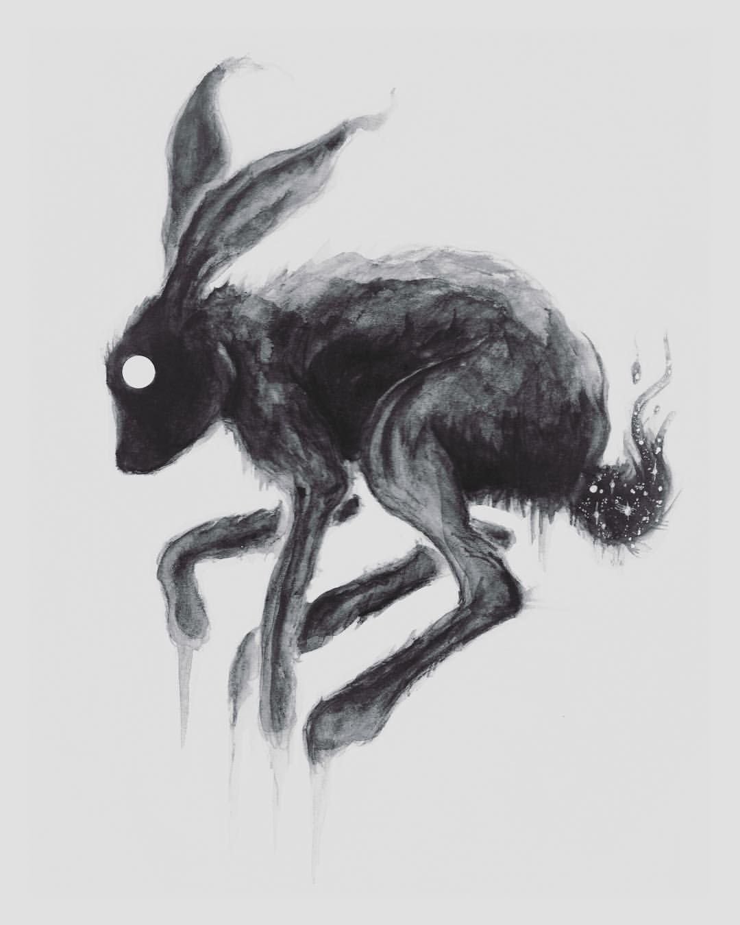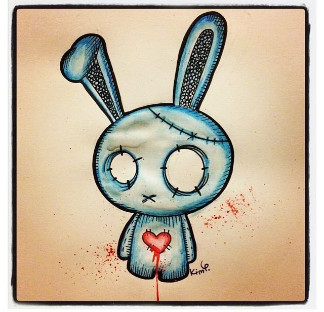 ![Криповый эскиз тату кролик]()