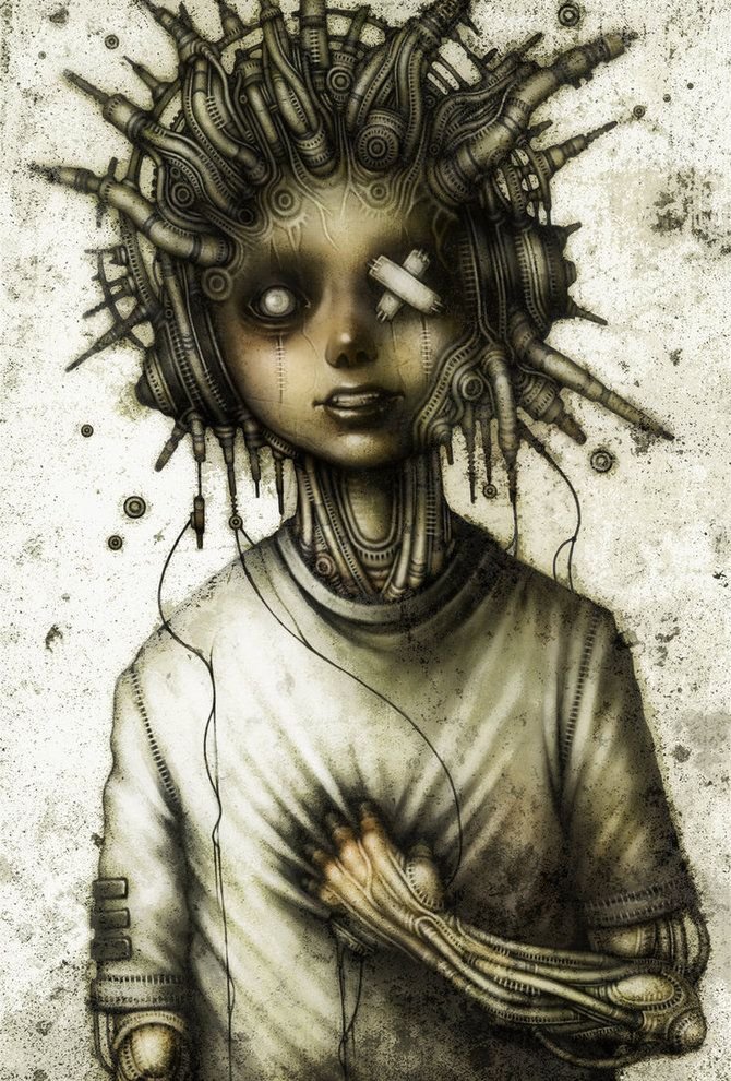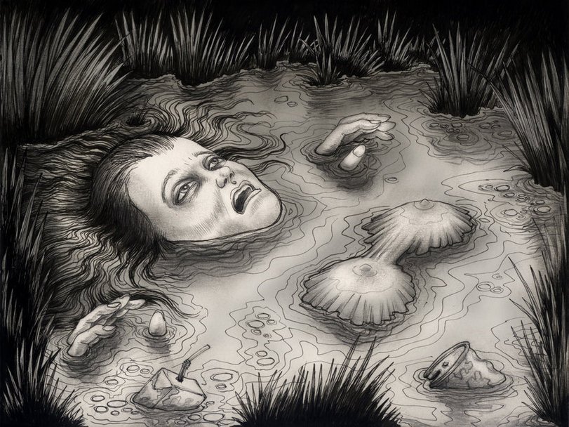 ![Жуткий черно белый арт]()