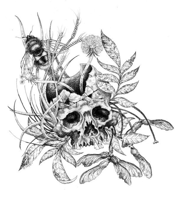 ![Череп с цветами арт]()