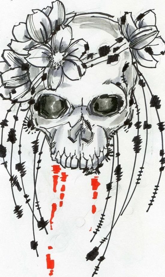 ![Череп с цветами скетч]()