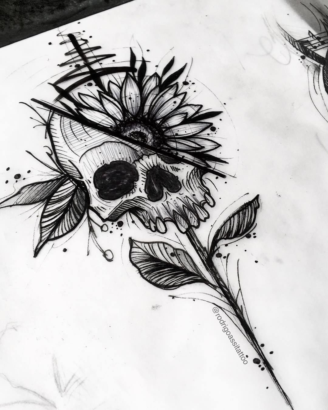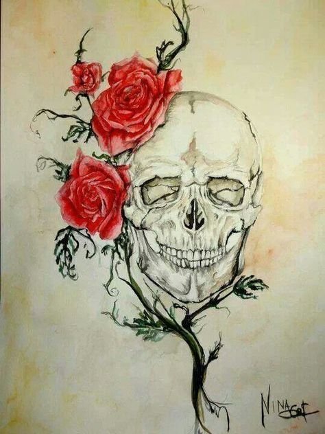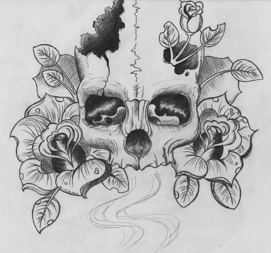 ![Череп с розами эскиз]()