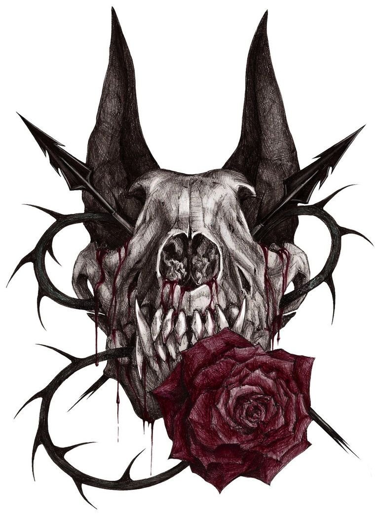![Череп с розой карандашом]()