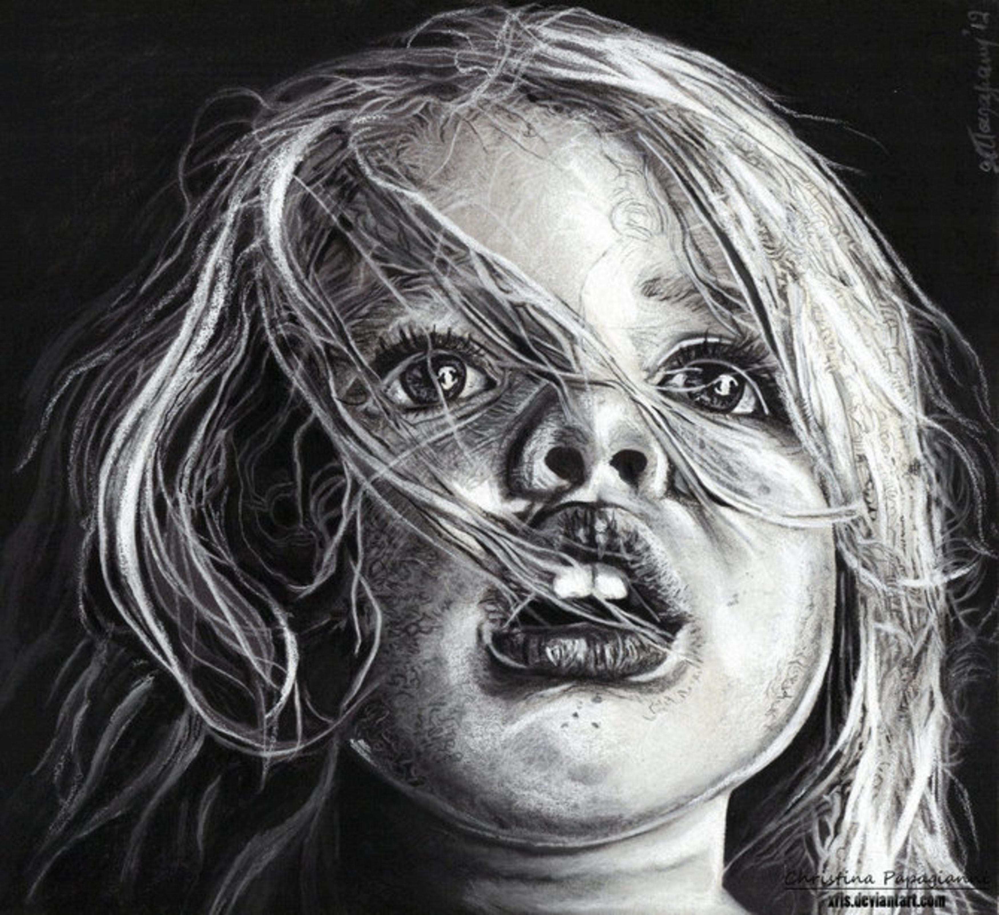 ![Страшное лицо карандашом]()