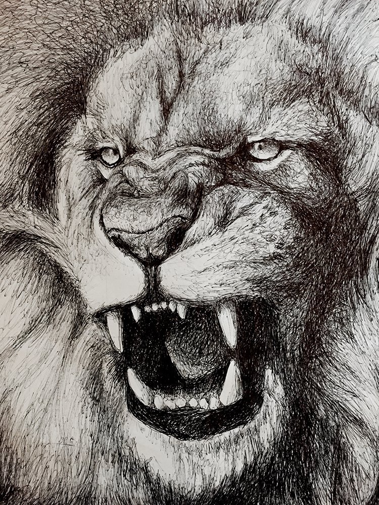 Лев - величественное, могущественное и одновременно загадочное существо, которое вызывает трепет у всех своей невероятной силой и самоуверенностью. Рисунок льва - это воплощение его внушительности и красоты. С помощью ярких и выразительных линий художник передаёт его черты и особенности: гордость взгляда, блеск в глазах, резные контуры лица и мощную и грациозную фигуру. Этот страшный лев олицетворяет древний символ силы, власти и бесстрашия. Он притягивает взгляд и заставляет задуматься о его тайнах и загадках, а также возникает желание разгадать его секреты и понять, что скрывается за его могучей внешностью. А каждый, кто решится на такой рисунок, добавит своему интерьеру изюминку и порцию энергии, наполняя его силой и достоинством льва.