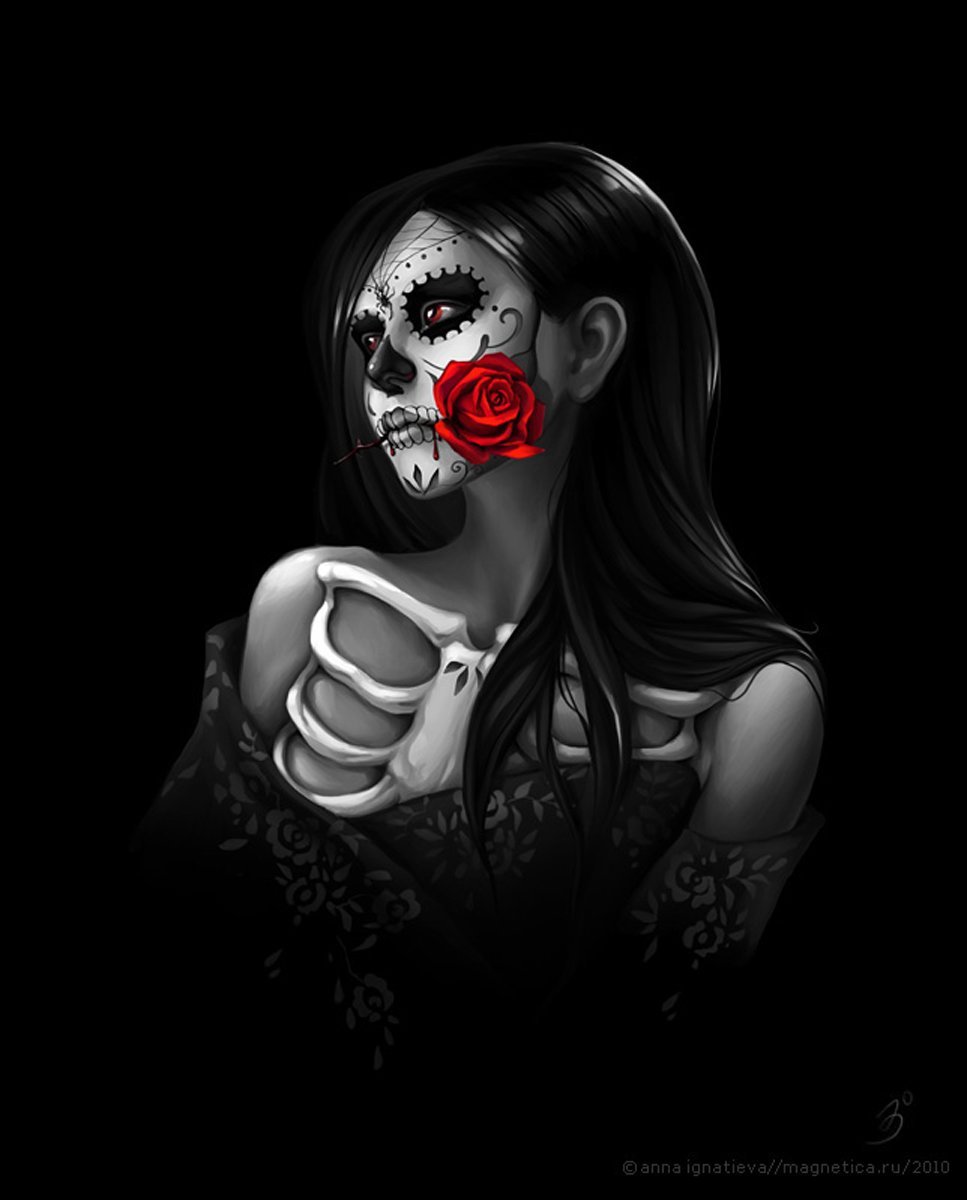 ![Картина девушка с черепом]()