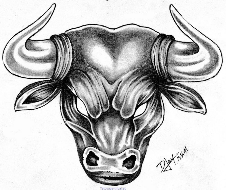 ![Морда быка тату]()