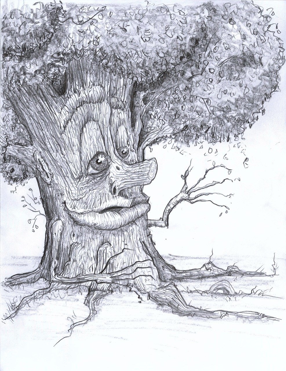 Страшное дерево карандашом