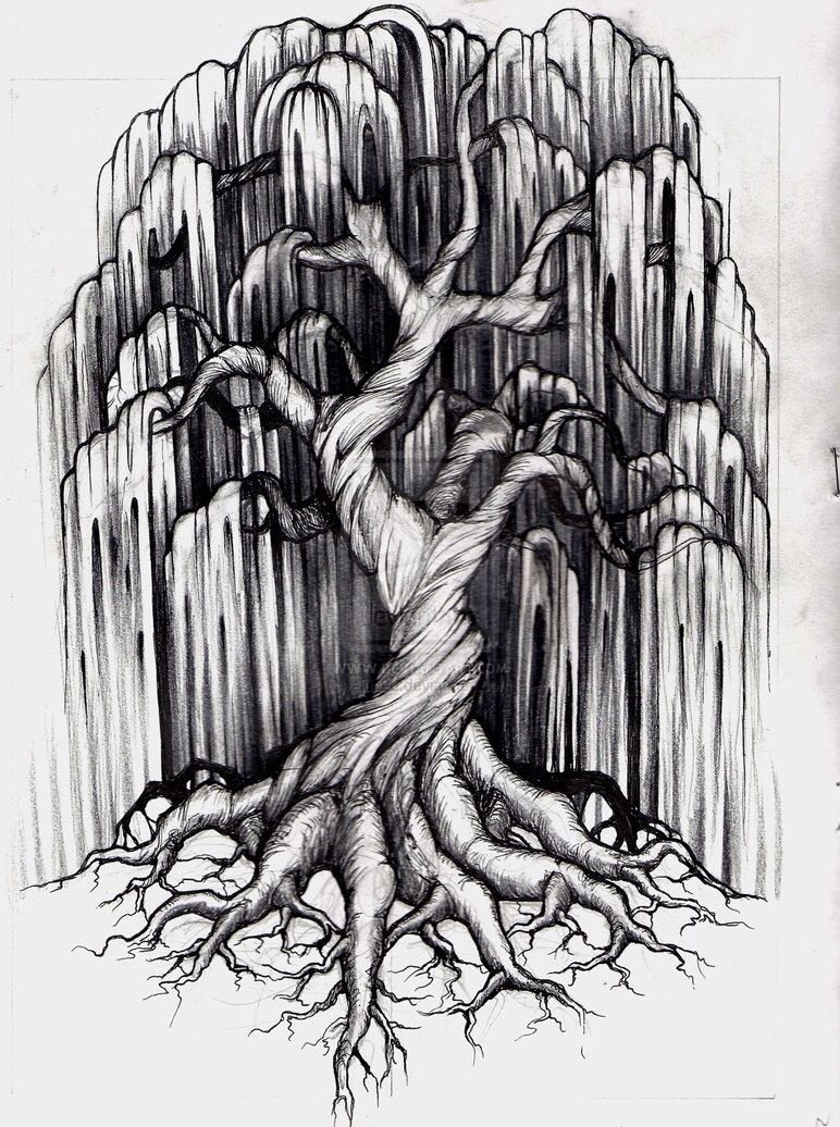 ![Страшное дерево карандашом]()
