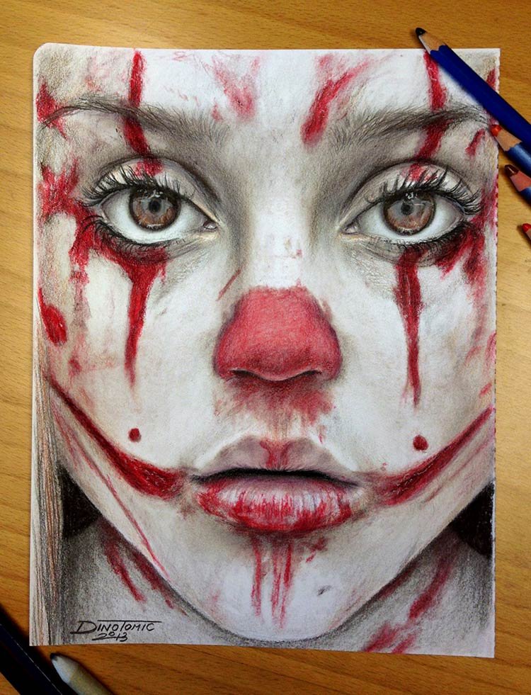 Нарисовать страшного клоуна