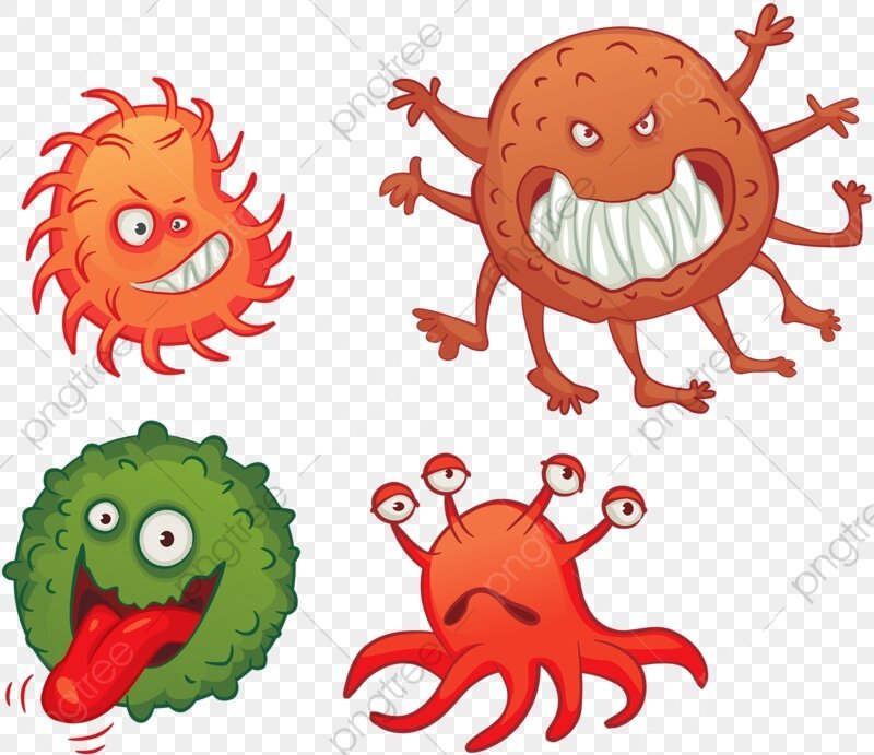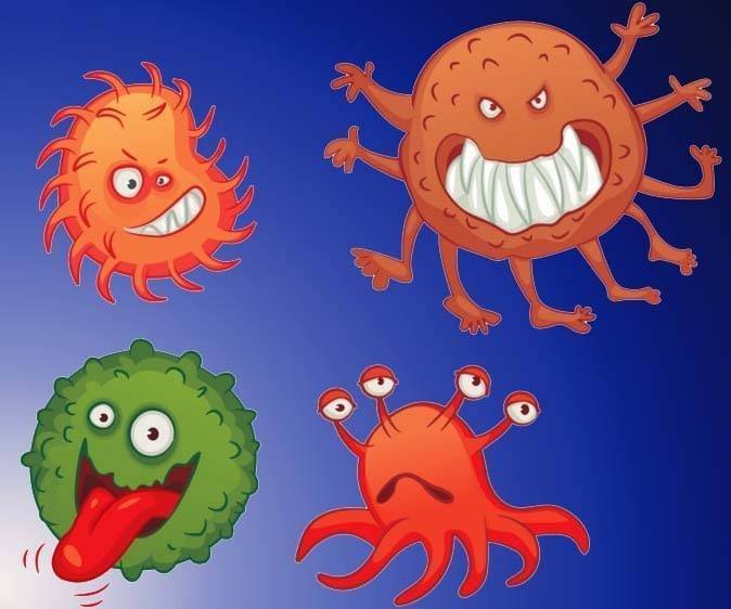 ![Мультяшные бактерии и вирусы]()