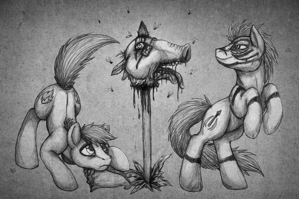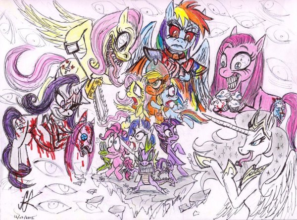 Страшные рисунки Май Литл Пони - это коллекция иллюстраций, которая позволяет взглянуть на мир знаменитых пони с необычной стороны. В этих работах художники использовали свою творческую фантазию и создали изображения, которые отличаются от обычных ярких и красочных картинок Май Литл Пони. Здесь вы найдете мрачные и загадочные сюжеты, олицетворяющие другую сторону этой популярной анимационной серии. Страшные рисунки Май Литл Пони предназначены для тех, кто хочет увидеть персонажей в более темном и интригующем свете, добавляя новый элемент в их историю.