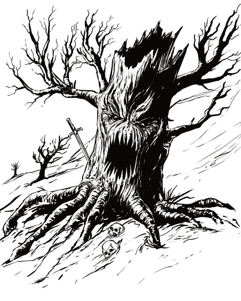 Страшное дерево с лицом рисунок - это удивительная и мистическая работа искусства, которая заставляет задуматься и впечатляет своей оригинальностью. На этом рисунке изображено дерево, которое привлекает внимание своим жутким и загадочным лицом. Выражение его глаз, носа и рта создает эффект тревожности и таинственности, заставляя зрителя задуматься о его происхождении и роли в окружающем мире. Этот рисунок является прекрасным примером художественного выражения и вызывает самые различные эмоции у своих наблюдателей. Он может быть интересным элементом декора или стать частью коллекции любителя необычных и удивительных произведений искусства.