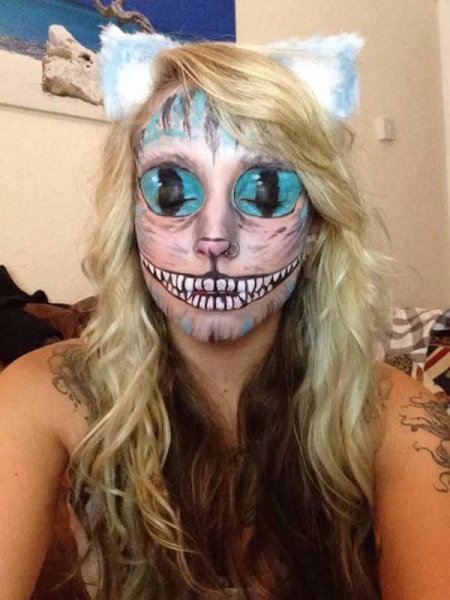 ![Макияж на Хэллоуин Чеширский кот]()