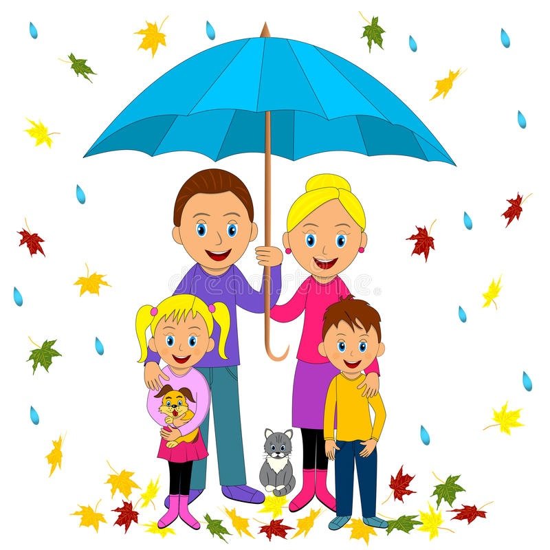 ![Родители с детьми под зонтом]()