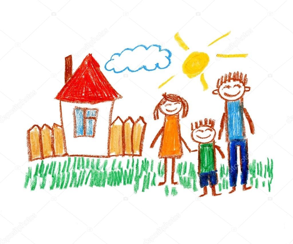 ![Детский рисунок домик и семья]()