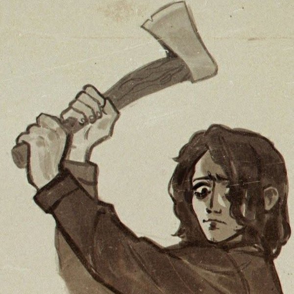 ![Человек замахивается топором]()