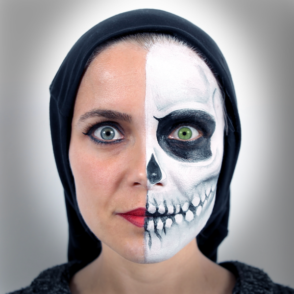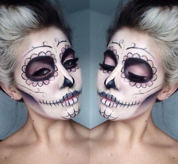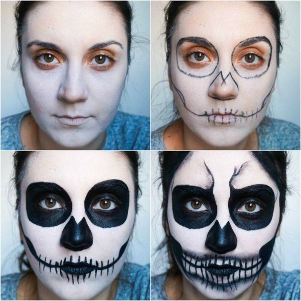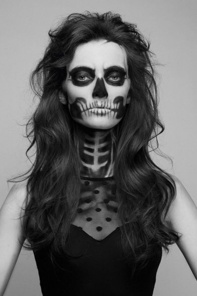 ![Макияж скелета на Хэллоуин для мальчиков]()