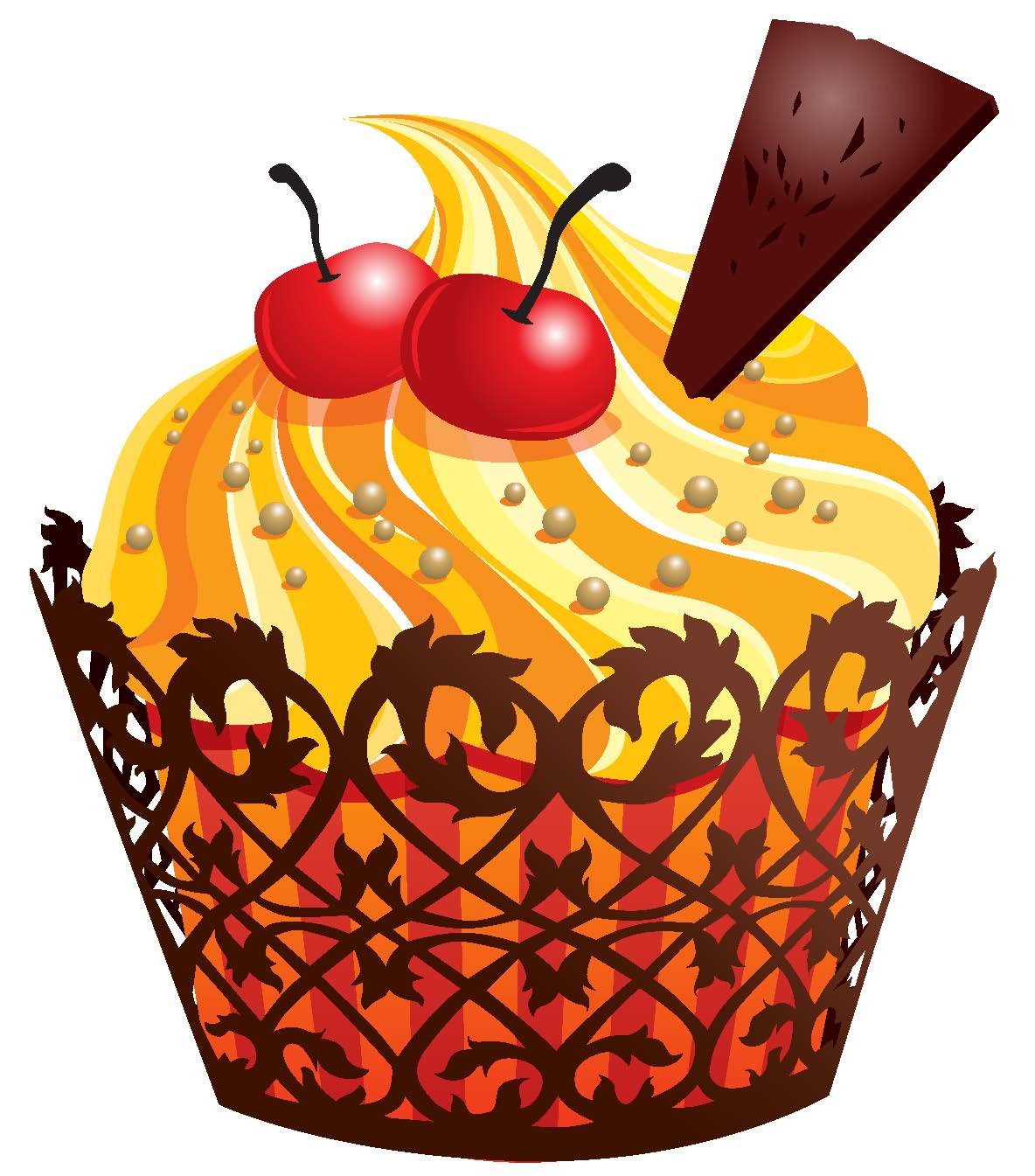 ![Пирожное с вишенкой вектор]()