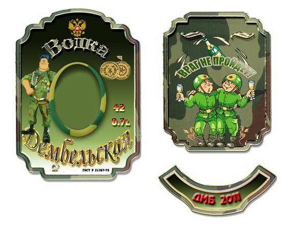 ![Этикетка на бутылку Дембельская водка]()